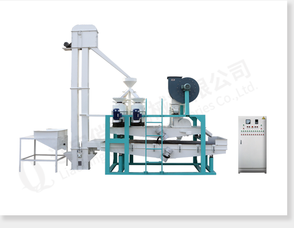 上料斗斗式提升機(jī) 脫殼、風(fēng)選、分選主機(jī) 吸風(fēng)回料 籽仁復(fù)選機(jī) 風(fēng)選除皮篩 接料斗 電氣控制柜